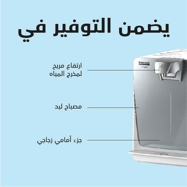 موزع المياه WPS 200 يوفر مياه مبردة ومياه فاترة غير فوارة تكفي حتى 100 شخص، ويعمل على ترشيح المياه باستخدام مرشح هاي بروتكت أو أكتيف بيور من كارشر، ويشمل الجهاز أيضًا وظائف توفير الطاقة (أنماط خفض الطاقة - الجاهزية).