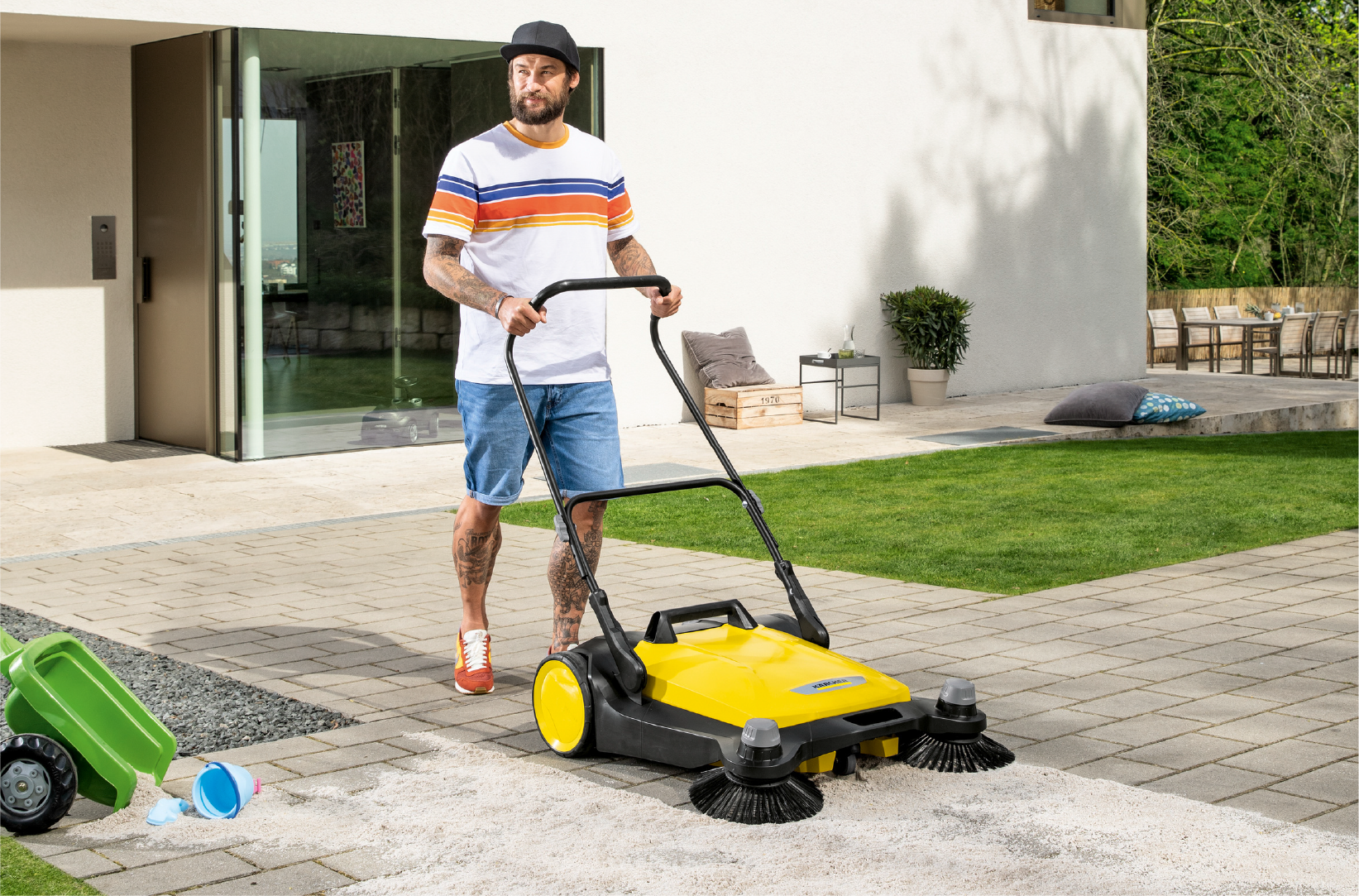 Sweeping will no longer cause back problems, and will even be fun. With our sweepers, cleaning the yard and pavement is made effortless. It is not only easier, but also five times faster than with a broom.. Our easy to use and flexible sweeper will make you look forward to the winter season.
