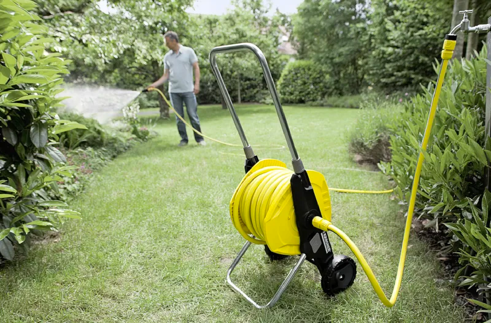 Always tidy, always ready to use: With the Karcher hose trolleys and hose reels watering the entire garden is done quickly and simply.