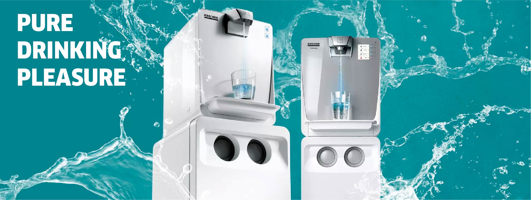 Our water dispenser WPD 200 supplies chilled and ambient still water for up to 100 people. The water is filtered either using an Active-Pure or Hy-Protect filter from Karcher. Useful energy-saving functions (energy-reduced and stand-by modes) are also included.